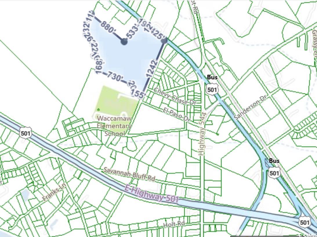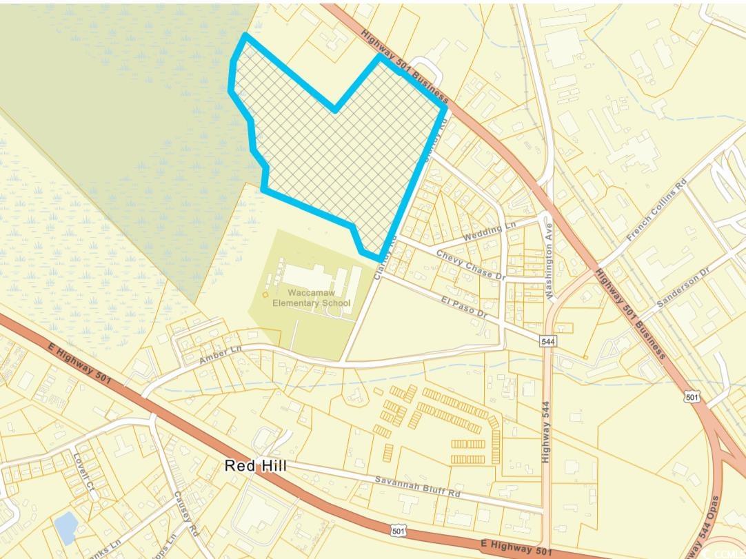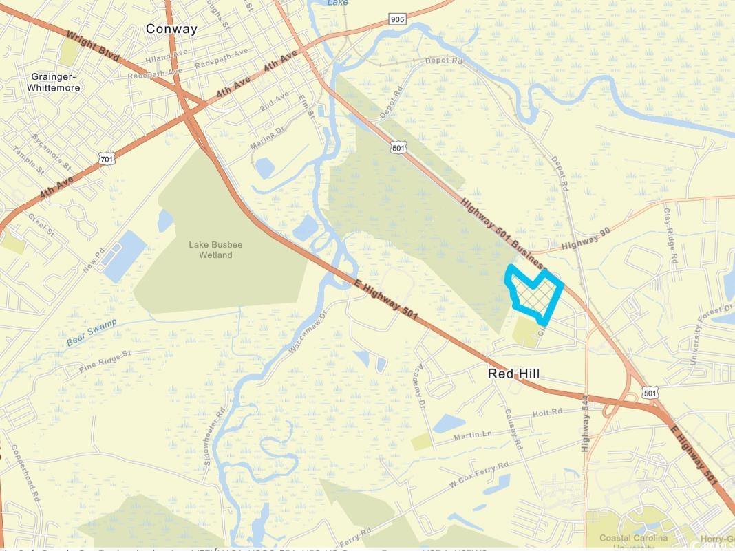CONWAY, SC- Approximately 35 acres for sale on Highway 501 Business going into Downtown Conway. Property is adjacent to Waccamaw Elementary School, and 1 block from DR Horton's The Towns @ Amber Bluff rental townhomes currently being constructed. Water, sewer, electricity, and cable are available. Currently zoned "FA". Conveniently located near Coastal Carolina University, Hwy 544, Hwy 90, Hwy 501, and Hwy 905 for easy commuting. Excellent location for luxury residential townhomes, self-storage facilities, convenience store, retail stores, or medical office complex.