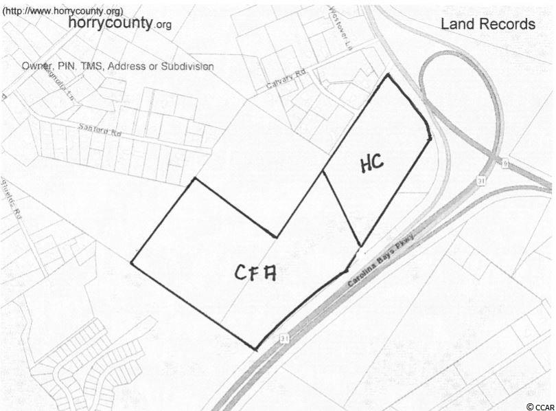 Great development site just off Highway 31 and Highway 9. 17 plus acres zoned Highway Commercial. 44.67 Acres zoned CFA. Water and sewer are available to site through Little River Water & Sewer. Highway 9 is a very desirable, fast growing corridor. Easy access and incredible visibility. Close to McLeod Seacoast Medical.